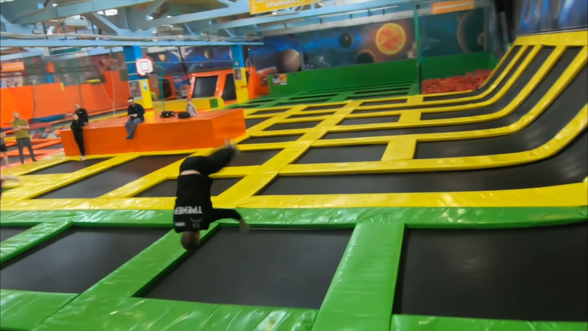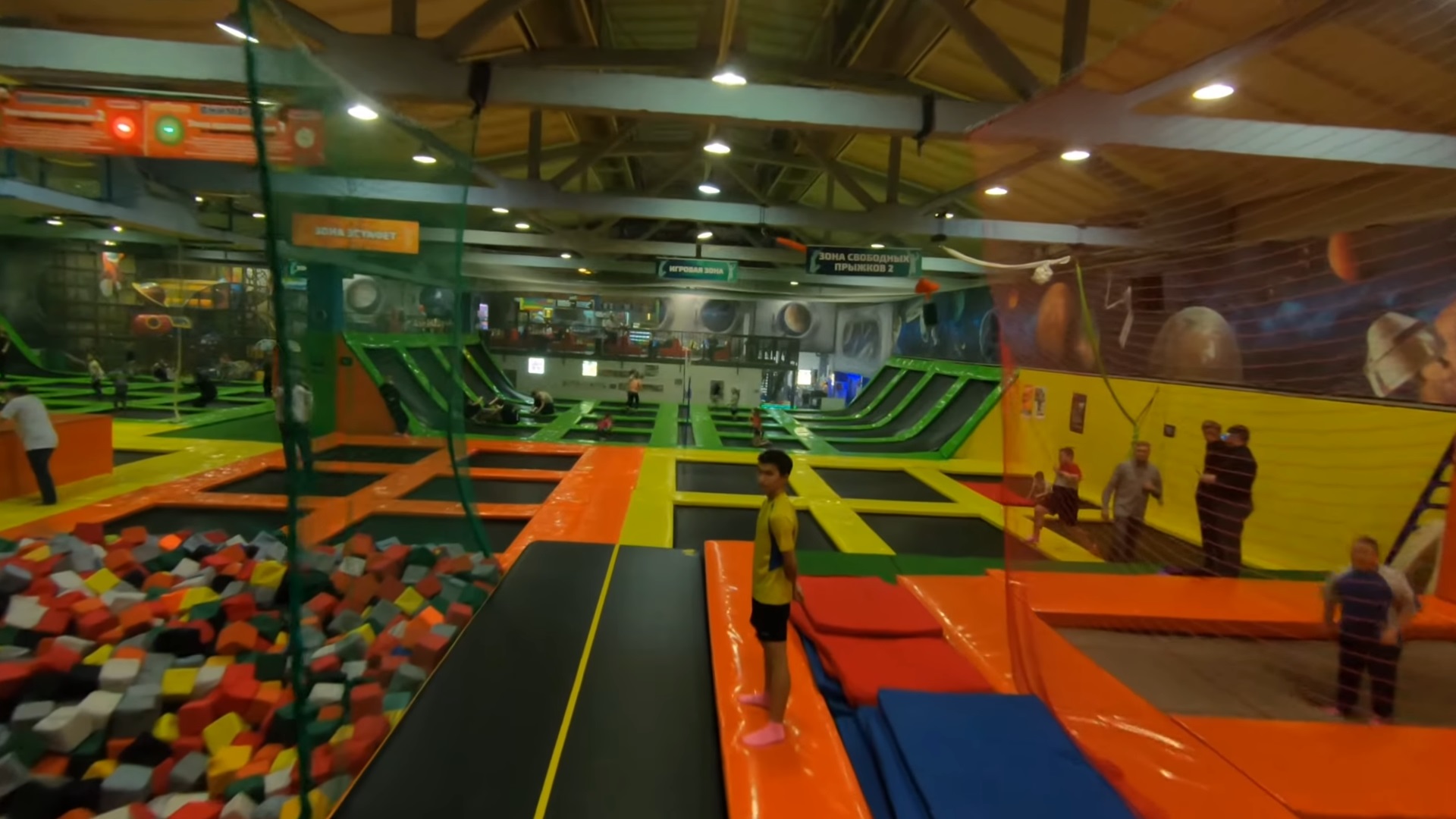 Понравилось, что много батутов разного уровня прыгучести, стена для скалолазания и резервуар с кубиками. Хорошие тренеры проводят грамотную разминку и показывают простые элементы. Стоит брать с собой прорезиненные носки, чтобы комфортнее прилепились, но и в обычных тоже можно, если они крепко держатся на ногах.